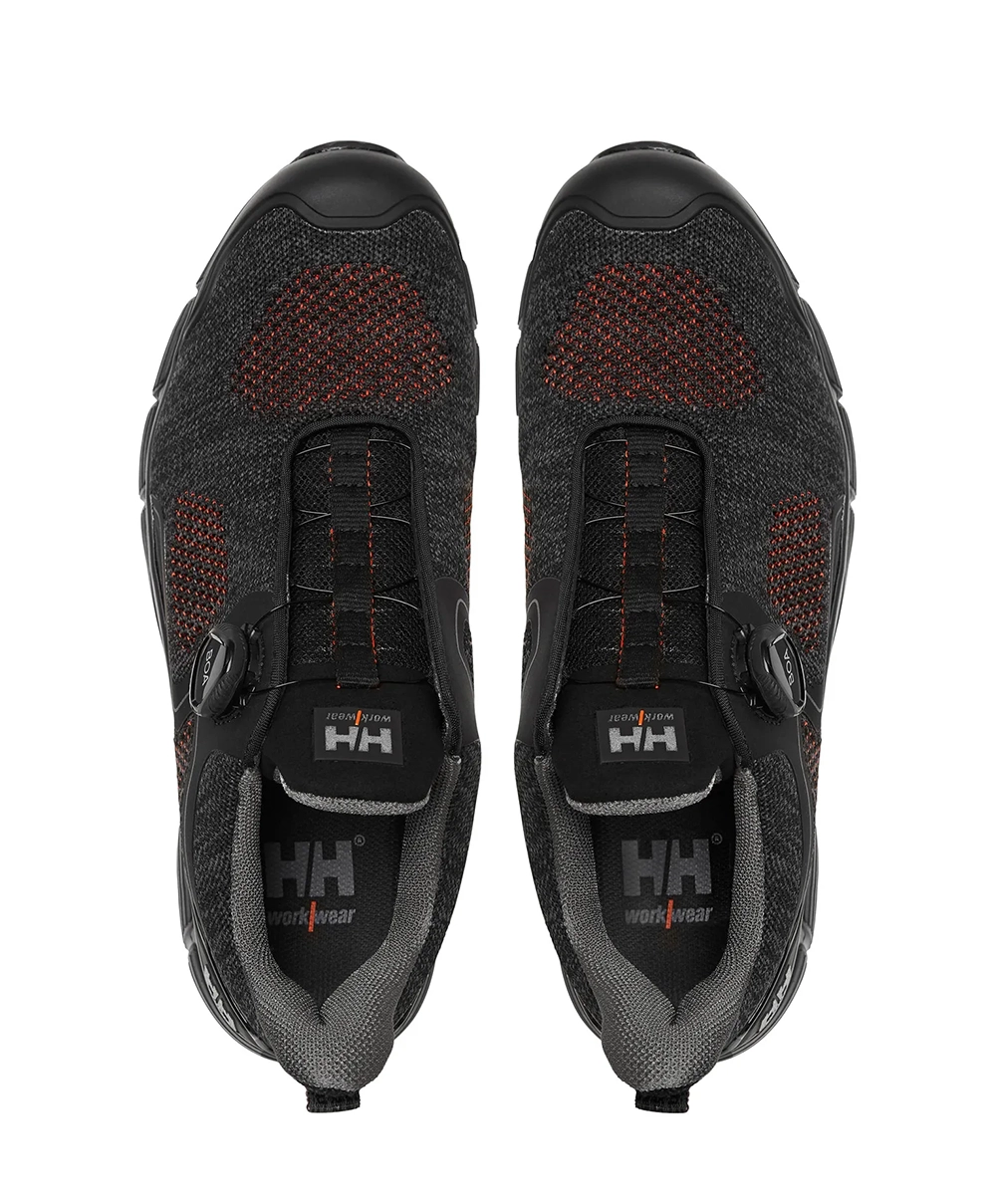 Kensington is inspired by the urban lifestyle of the modern tradesman. HH DUAL-STRIDE TECHNOLOGY expertly combines EVA and eTPU to provide the optimal cushioning, stability and energy return to keep you comfortable and on your feet all day. The knit uppers are water and abrasion resistant and the molded TPU toe bumper and heel overlay protect high wear areas. The BOA® Fit System allows you to dial in to fast, effortless, precision fit.