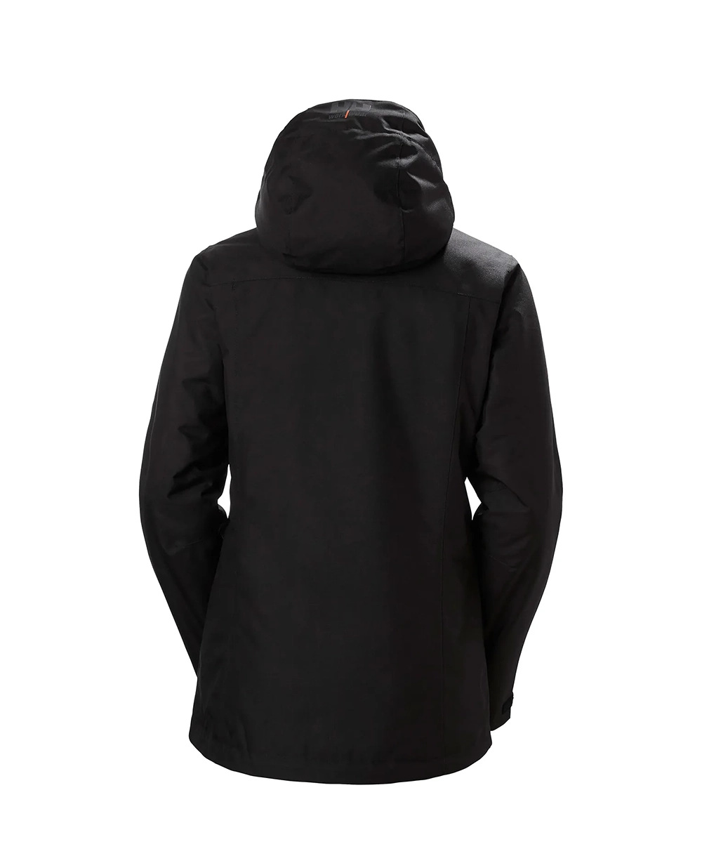 De Luna-winterjas, ontworpen en getest door vrouwen, is de perfecte keuze voor vrouwen die aan het werk zijn op een koude winterdag. Het Helly Tech® Performance-membraan en de Primaloft® Black Eco-isolatie zorgen ervoor dat de jas licht van gewicht, waterdicht, winddicht en ademend is.