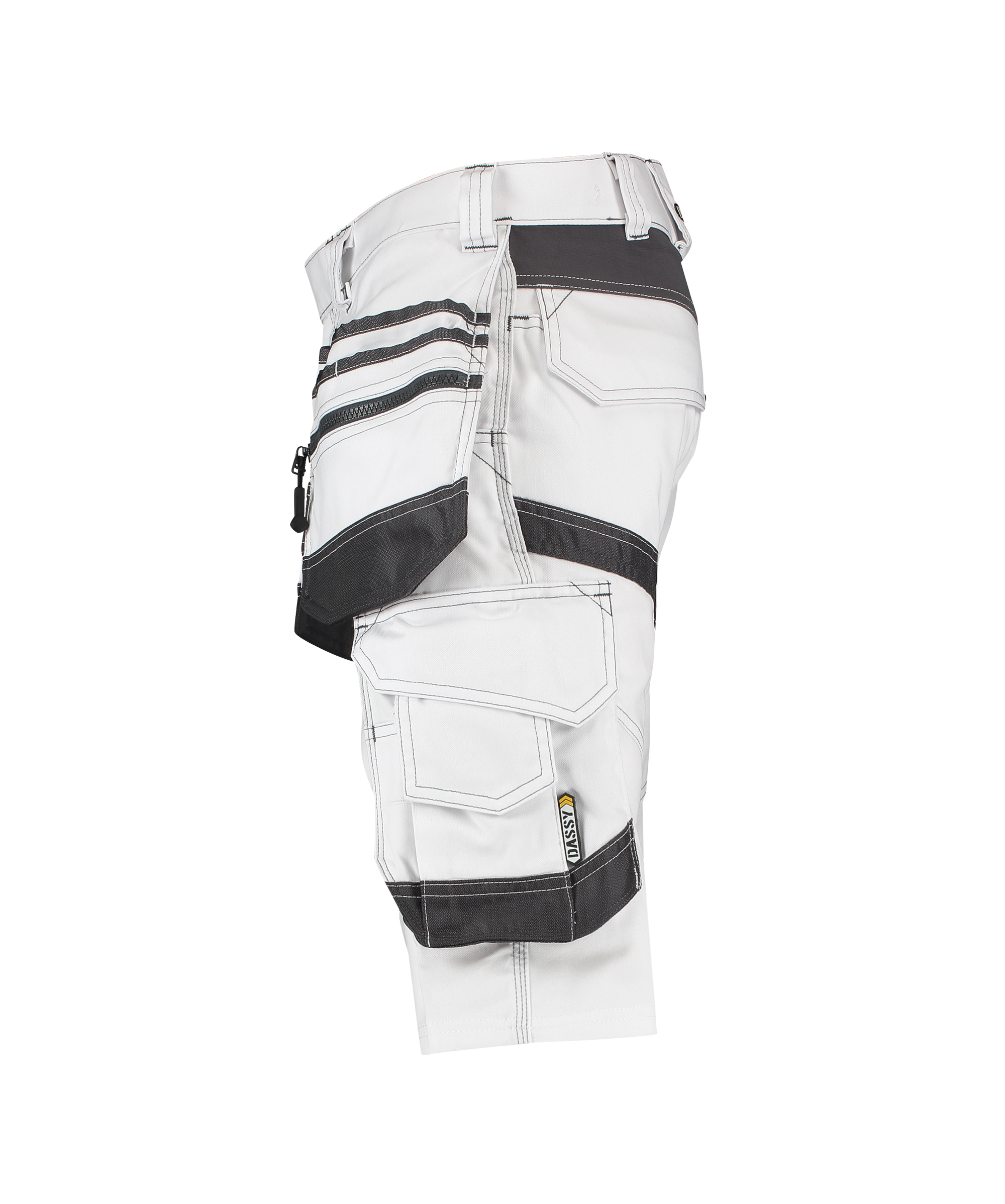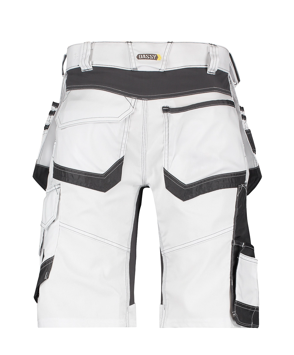 Met deze schildersshort met stretch en holsterzakken DASSY® D-FX Flex Trix Painters halen schilders en stukadoors het maximale uit hun werkdag. De talrijke zakken zijn, net als de speciale dijbeenzak voor schildertools, goed gepositioneerd én versterkt met Cordura®. En de stretch inzetstukken? Die bevinden zich precies waar je extra stretch nodig hebt!